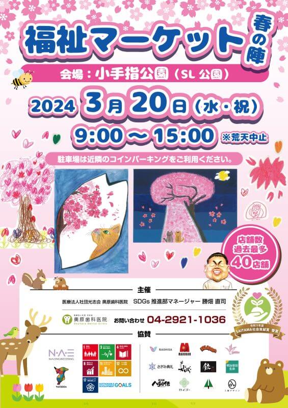 さて、今月スキップは3月20日(水)に小手指公園で行われる奥原歯科主催の福祉マーケットに参加します☺