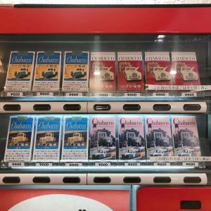 そんな駅の改札を出るとすぐ左側に今度は「ちゃばこ」なる変わった自動販売機が目に入ります。"たばこ"ではなく"ちゃばこ”(中身はお茶)が売ってます。