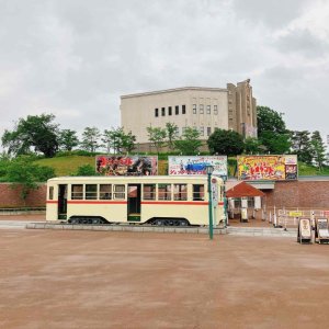 そして広場に出ると思いっきり昭和の歌謡曲なんかが流れています。昭和時代に活躍した路面電車も置いてあります。ある程度年齢が上の世代には懐かしいし、若い世代には新鮮だったり感じ方は人それぞれでしょうね。