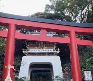 江島神社の鳥居がかっこよくて写真を撮りました。