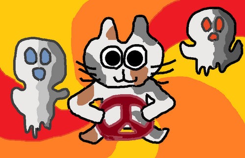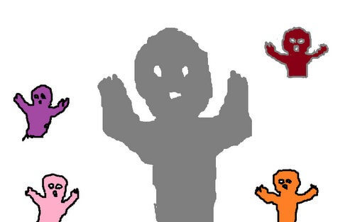 画中、ナゾのお化けのような絵がよく登場していますが、