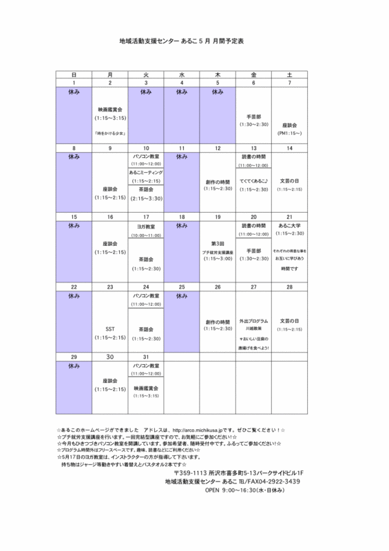5月の予定表です。