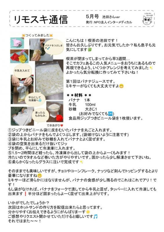 今回は、池田さんが、カフェあるこ人気メニュー「バナナスムージー」の作り方を通信にしてくださいました!!!!
