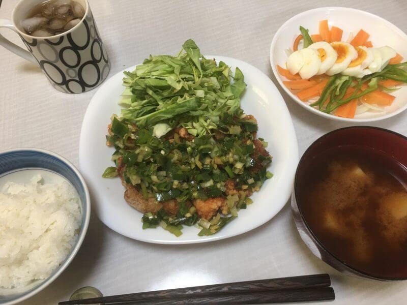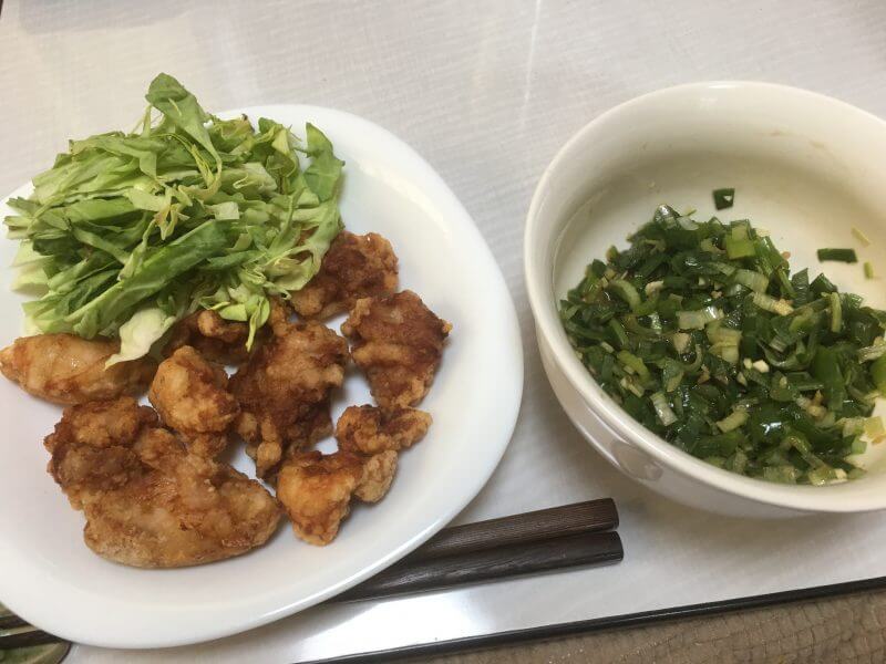 さて、油淋鶏は、お店やレシピ本の「意訳」の示す如く、鶏のから揚げに香ばしい、ねぎ