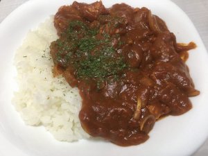 でも、ご飯、味噌汁(じゃがいも、赤だし入り)と並べ、ひさびさ、「ごはん」をたべた、