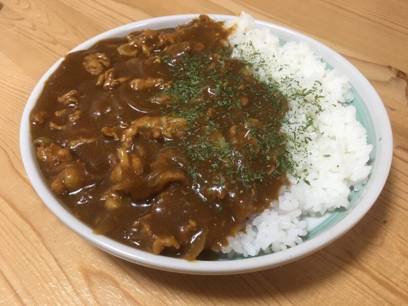 すっかりパスタ攻勢がつづいた当方、ここでもってきたのは料理研究家リュウジさんの「シンプルカレー」(星占い鏡リュウジさんとは別人です、念のため)。豚こま肉、玉葱、大蒜(にんにく)、カレールゥがおもな材料、なる程「シンプル」ですね。