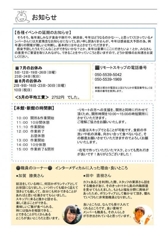 スキップだより 7月号