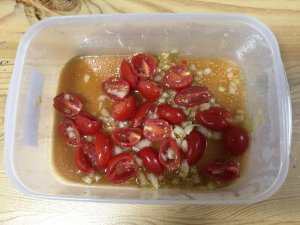 「マリネ」と「しょうゆ漬け」もたいへんおいしく頂きました。ミニトマトはもう少しあるので、またつくろうかな。