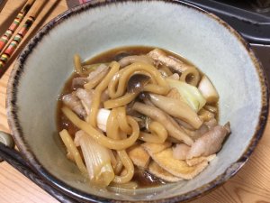 今回ひとりぶんながら、冷凍うどんが、ひとり用の鍋におさまらなかったため、家庭用サイズ(?)の大きな土鍋でつくりました。余裕があって、加熱もうまくできたと思います。似たものを拵(こしら)えるときの参考にしたいと考えています。