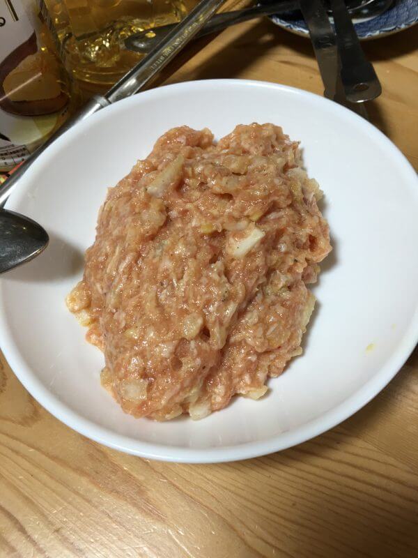 豚ひき肉と玉葱みじん切り、生姜みじん切りを混ぜ、塩小さじ1/4、ブラックぺッパーを少しつよめに入れ、手で練りこみ、粘りがでたら、卵1個を入れ、揉みこんでいく。少し柔かい感じになったところで、片栗粉大さじ1を加え、揉みこみ、片栗粉を更に大さじ1/2足し、慣らす。鍋に水500cc、白だし80cc、創味シャンタン小さじ1/2、酒大さじ1、醬油大さじ1を入れ、沸かしていく。肉種をスプーン2コつかい丸くし、鍋につぎつぎと投入していく(ぼくはスプーン1コでやりました。丸くならないだけで、それこそ「しずく」のようになります。味に遜色はないです)。沸騰してきたら灰汁(あく)をとり除く。味見してみる。おつゆが少し多かったら、幾らか取っておいて、あとで煮詰まったときにつかう(今回つゆが足りなさそうだったので、逆に水や各調味料を少し足しました。この際味のバランスに気をつけ、しょっぱすぎないようにします)。具を入れていく、春雨(小分けしてあるショートタイプが便利)、白菜、しめじ、長葱を加える。三つ葉やニラ等、青味の野菜を入れても良い。基本的に、具は好きなものでOK。野菜が煮えたら(肉種には大体火が通っている)、ハイ、完成!