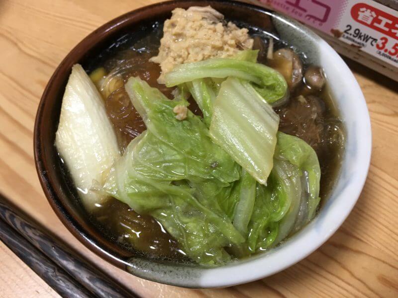 つゆの塩気は、うん、大丈夫だった。旨い。肉種は生姜が良く効いて、おいしい。白菜は良く煮え、しめじの芳香、つゆを含んだ春雨、煮えて甘い長葱が熱々の鍋から、我がお腹を充(み)たしてゆく。つゆを啜(すす)りながら、具をたべすすんでゆく。旨い。いやさ、おいしい。じつは、使用した生姜、白菜、しめじ、長葱が若干フレッシュでなく、その点仕上がりに関して懸念されたのですが、特に問題もなく、充分舌をたのしませることができました。具材を予め(あらかじめ)用意してもこれですから、良く言われるように、冷蔵庫の残り物で調理できたら、それはもう一丁前、台所を与る(あずかる)プロの称号を手にしたも同然ですが、中々途のり(みちのり)は遠く、むずかしいものですね。