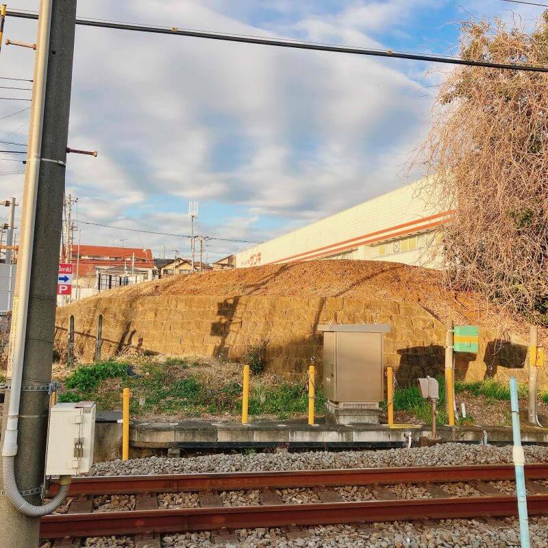 見ての通り「土塁の一部」しか残っていません。「石垣」のようなものが写っていますが、石垣ではないようです。